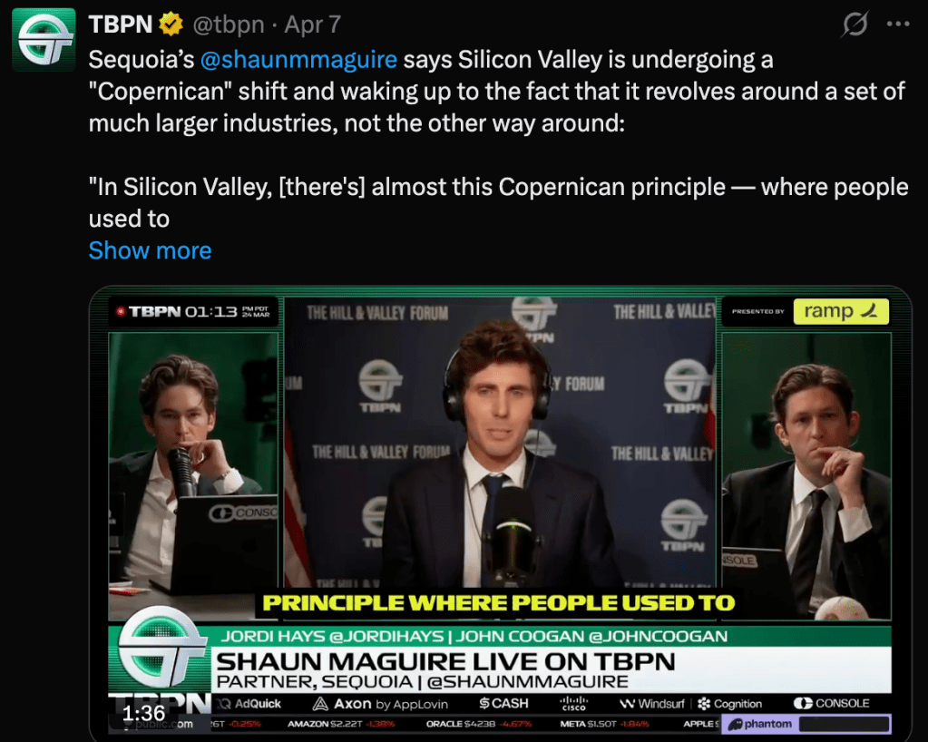 “In Silicon Valley, [there’s] almost this Copernican principle — where people used to believe that the world revolved around the Earth, then realized that it revolves around the sun.”